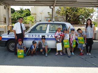 今回、見学にご協力いただいたお店は、日本交通・ダリオルール(ケーキ屋さん)・ファミリーマート(うるくたから店)・小禄保育園・ひろせや(天ぷら屋)・ポイント1(バイク屋さん)・琉球苑(デイサービスセンター)・シャンゼ(床屋さん)・靴流通センター・小禄学校給食センターの10店舗です。