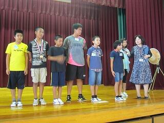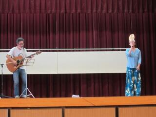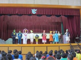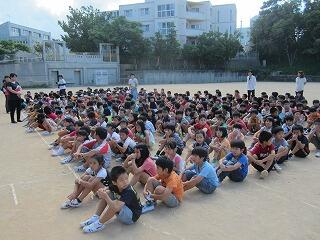 10月1日(水)にお話朝会がありました。毎週金曜日に、読み聞かせのボランティアをして頂いている「よむよむの会」のみなさんが「浦島太郎」をうちなーぐちで演じてくれました。その後、子育て応援ソングを歌とギターで披露してもらいました。児童はとても楽しんで鑑賞していました。すばらしい内容で、児童が楽しめる朝会を企画して頂いた「よむよむの会」のみなさん、ありがとうございました。