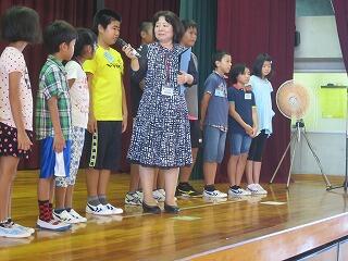 6月12日(金)の2校時に平和集会がありました。対馬丸記念館の外間邦子さんによる「対馬丸」のお話を全校児童で聞きました。最後に、講話をして頂いた外間さんへのお礼と感謝の気持ちをこめて、6年生が「月桃」を歌いました。平和集会を通して、平和に対する考えを深めることができました。貴重な体験をお話して頂いた外間邦子さん、本当にありがとうございました。
