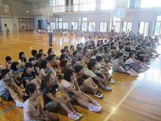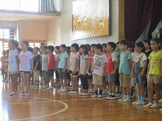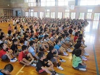 その後、校長先生からのお話があり、1学期前半を振り返りました。長い夏休み!楽しく安全に過ごしましょう。