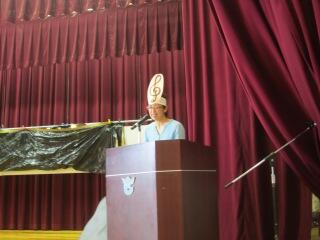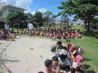 11月26日に表彰朝会があり、さつきっ子の活躍をみんなの前で紹介しました。その後、童話お話大会で那覇地区の最優秀賞に選ばれた児童が、「みんなともだち」のお話を発表し、全校児童で鑑賞しました。工夫のあるすばらしい発表に、全校児童が真剣に聞きいりました。さつきっ子の今後の活躍にも期待してます。