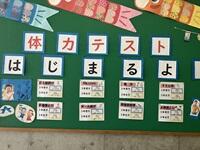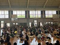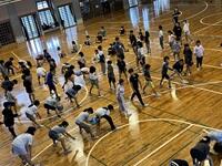 体育館で反復横跳びや長座体前屈等の練習をしました