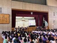 明日の音楽朝会では「沖縄から平和の歌を」を全校児童で歌います