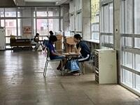 検査会場へ向かう2年生。「誰も通っていないみたいに」静かに移動していました