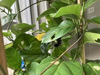 オオゴマダラの幼虫が大好きな「ホウライカガミ」の葉の裏に幼虫がいます