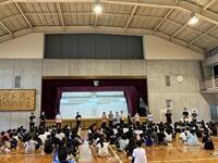 7月12日(水)13日(木)14日(金)の3日間、文化庁の芸術家派遣事業で、「くまから」のメンバー比嘉祥人さん(クロマティックハーモニカ)新崎成実さん(ピアノ)飛田あゆ梨さん(マリンバ、打楽器)の芸術家による演奏を4,5,6年生が鑑賞しました。楽器の説明や各楽器での演奏、子供たちも一緒に演奏するなど楽しい活動ができました。