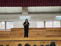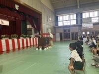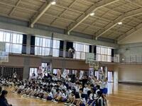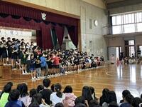1校時 修了式 1年生が1年間を振り返って「思い出のアルバム」(替え歌)を歌いました