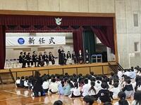 新任式では新しくさつき小へ赴任した先生をお迎えしました