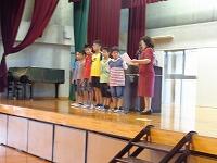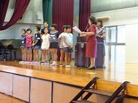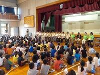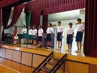 平成28年6月22日(水)音楽朝会がありました。今回は6年生が担当学年でした。今月は平和月間ということで、折り鶴も飾られて歌に平和への思いを込めて合唱しました。6年生の歌声と、全校児童で歌った「月桃」は、気持ちのこもったとても素敵な歌声でした。
