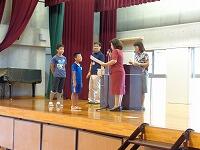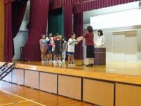 平成28年6月1日(水)児童朝会がありました。今日はピカリン朝会と題して、保健委員会が中心となって行いました。まずは、6年間むし歯の無かった児童10名を表彰しました。これまで1本もむし歯が無かったことは、とても素晴らしいことですね。これからも頑張ってください。表彰の後は、保健委員会のみなさんが歯や歯みがきの大切さを「劇」で伝えてくれました。衣装や小道具、大道具、効果音などにもこだわり、とても分かりやすく楽しく伝えてくれました。保健委員会のみなさん、ありがとうございました。