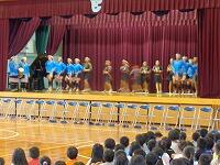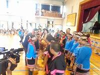 交流会では、台湾児童の紹介の後、さつき小児童による沖縄の伝統芸能(空手・エイサー)の披露をしました。その後、台湾児童による台湾の紹介と歌・民俗楽器演奏の披露が行われました。初めて見る衣装や歌、踊りにみんな興味津々でした。