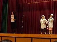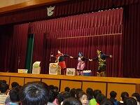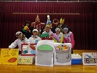 平成29年2月1日(水)お話朝会がありました。今日は、毎年恒例になっている、「よむよむの会」の方々による「劇」が行われました。さつき小学校の給食室を舞台に、残量が多いさつき小の給食を鬼たちが奪い、それをさつきレンジャー達が取り返すという、ストーリーになっていました。カラフルな鬼たちや、正義のヒーローさつきレンジャー、おもしろい給食当番の「しろう」と「ゆみこ」、校長先生(本人)等、登場人物が実に個性的で、とても盛り上がりました。手作りの衣装や小道具、ナレーションやBGMなども効果的に使い、プロの劇団さながらの内容になっていました。よむよむ劇団のみなさん、笑いと感動をどうもありがとうございました。さつき小のみなさん、これからも、給食は残さずおいしくいただきましょうね。