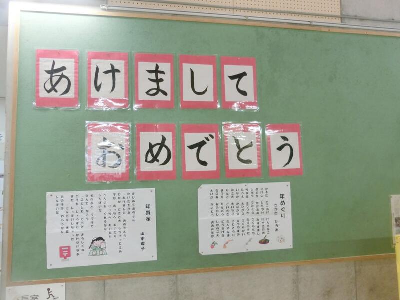 1月5日(水)2学期後半が始まりました。 エントランス・学年掲示板・各学級お正月の掲示がされていました。