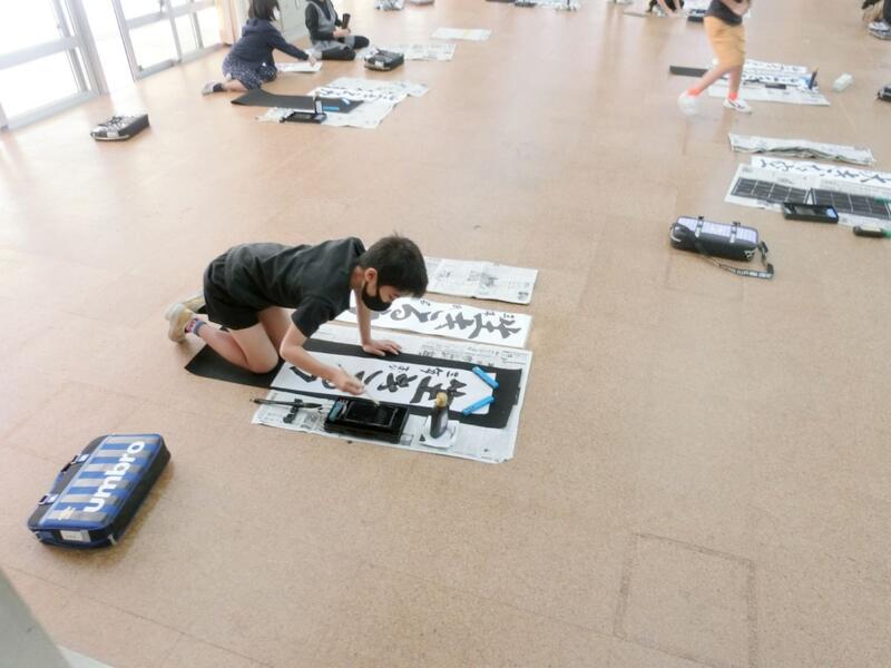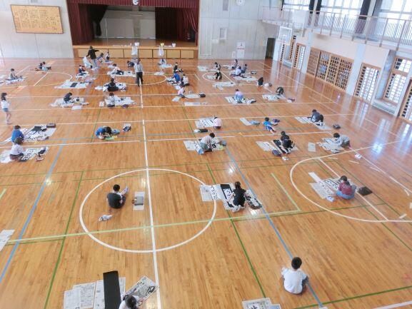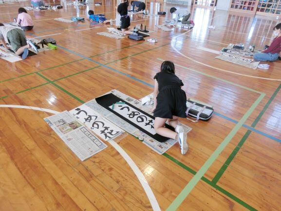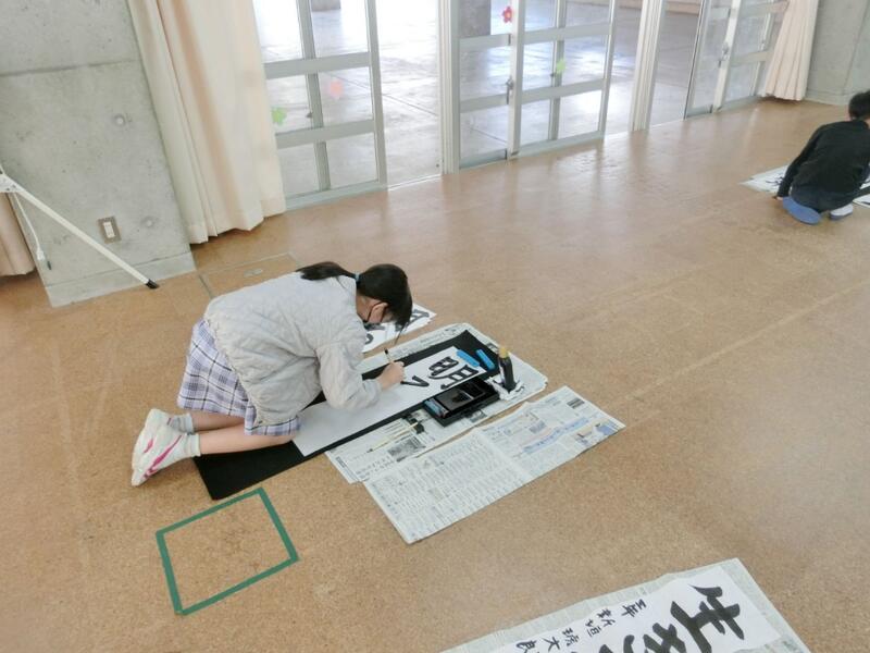 「春の海」の音楽が流れる中で真剣な表情で取り組んでいました。