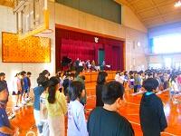 1年生と4年生の共演で音楽朝会がありました。「ちゃいろのこびん」を4年生が合奏し1年生が歌を歌ってくれました。息の合った4年生の合奏と元気いっぱいの一年生の歌声が体育館に響き渡りました。最後に、音楽鑑賞会でも歌った「赤い屋根の家」を全校児童で歌いました。