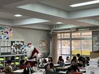 1年生の教室にサンタさんがやってきました