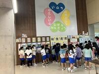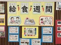 児童玄関ホールに給食週間にちなんだ掲示コーナーが設置されています