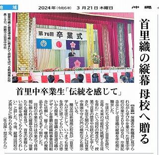創立76年、歴史ある本校の校訓は「海邦秀麗」で、「心身ともに健やかで麗しく、知力、体力に秀で、守礼の国を誇りにし、広く海外に雄飛する」という意味を持ちます。これからも、未来の可能性に挑戦し続ける首里中生を応援していきたいと思います。