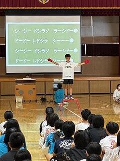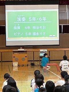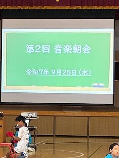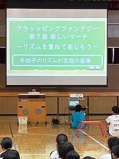 今朝の音楽朝会は、『クラッピング』ファンタジー 第7番楽しいマーチ』-リズムを重ねて楽しもう-と題して、演奏とクラッピングを楽しみました。