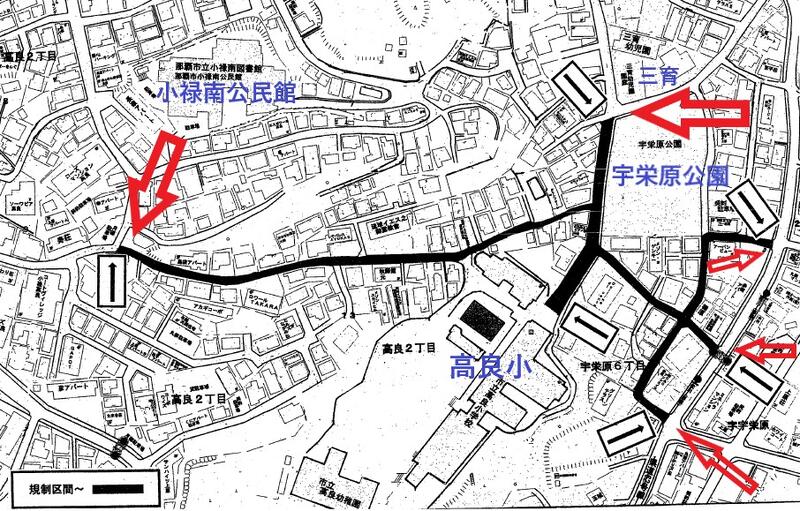 規制区間は、午前7時30分から午前8時15分まで、豊見城警察署が発行している通行許可書をもっている車しか通れません。高良っ子の児童の安全な登校を守るためです。