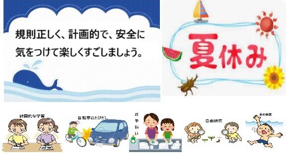 夏休み期間中は、規則正しい生活をし、自分でルールを決めて行動しましょう。