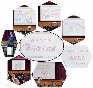 子ども間のいじめやSNS上でのさまざまなトラブルについて、わかりやすくお話ししていただきました。各家庭において、スマホを使用する時間・場所・課金などについて親子で話し合い、きまりを作ることが大切であることを学びました。これを機会に各家庭でも話し合われてはいかがでしょうか。最後に児童代表から、「今日学んだことを守り、楽しい生活を送りたいです。」と決意の発表がありました。本日は、本校児童のためにお越しいただいた豊見城警察署のお二方、お忙しい中、ありがとうございました。