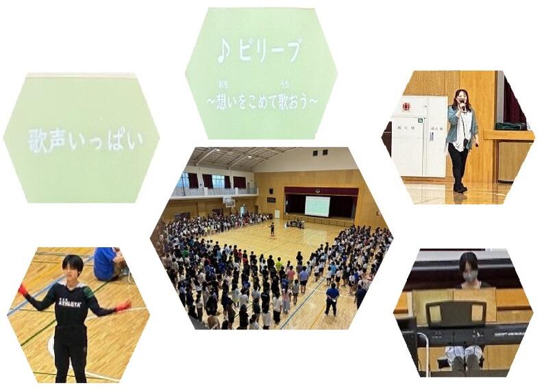 今朝、今年初めての『音楽朝会』がありました。曲目は、『ビリーブ』で、高学年と低学年が2パートに分かれて、美しい音色で歌っていました。