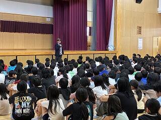 1年生が入学して、はや一ヶ月。次第に学校生活にも慣れだしてきました。今日は恒例の『入学を祝う会』が行われました。各学年、出し物やプレゼントを「1年生が喜んでくれるといいな」という思いで、準備や練習に励んできました。キレッキレのダンスに会場は大盛り上がりでした。1年生からも感謝の言葉を聞くことができ、上級生達も「がんばってきて良かったな」という表情を見せていました。 最後に校長先生から、「このようにしてくれた上級生達に対して、感謝の気持ちを持てるようになってほしいです。」という言葉がありました。