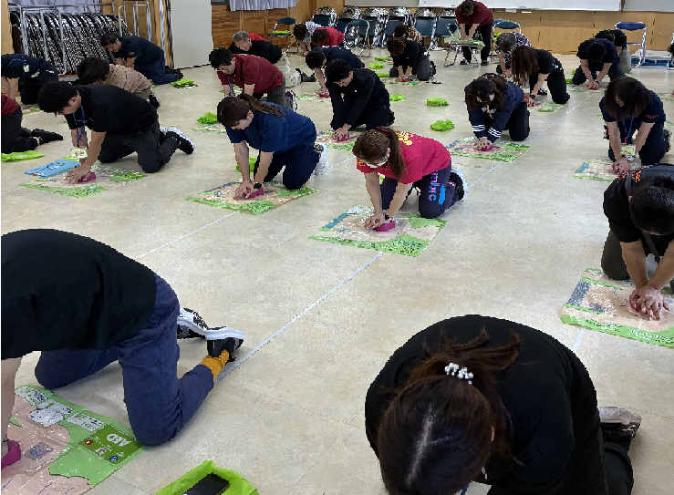 今年もプール学習を前にして、『⼼肺蘇⽣法・エピペン講習会』が、浦添総合病院救命救急センターの講師の先生をお招きして行われました。大切な児童の命を守れるよう、全職員真剣に取り組みました。