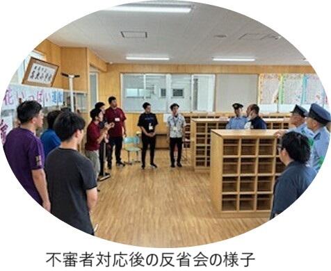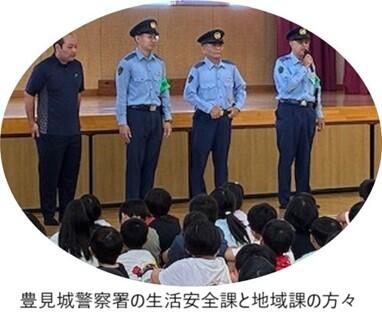 今年も、児童や職員の安全確保と、不審者対応の迅速で的確な行動を身につけるため、『不審者避難訓練』を実施しました。高良小の児童は、『いかのおすし』の合い言葉をしっかり守り、真剣な態度で臨むことができていました。また、今日は豊見城警察署の生活安全課と地域課の方々から、いろいろなお話を聞くことができました。その中で、新たな合い言葉の『さっきみた』→「さわろうとする」「つれていこうとす「見せてくる(見たくないものを見せる)」「食べ物をくれる」という不審者の特徴を教わりました。最後に校長先生から、「不審な人を見かけたら、臆さず、すぐに110番をかけましょう。」というお話がありました。