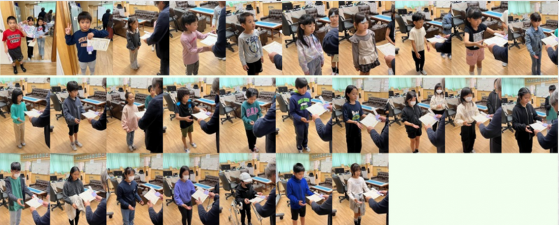 今日の昼休み時間に、校長室で12月のがんばり名人表彰式がありました。校内放送で、児童の名前が呼ばれたとき、あちこちの学級から歓声が起こっていました。2025年もがんばりましょう。