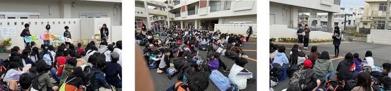 今日の児童集会では、那覇市共同募金会、那覇市社会福祉協議会の長嶺さんと前川さんをお招きして、高良っ子が集めた募金を贈呈しました。この募金は、地域福祉の推進を図るために、主に社会福祉事業やその活動を応援するために使われるそうです。