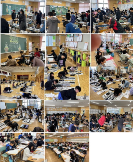 今日から少しずつ寒くなるようですが、そんなピリッとした空気の中、高良小では一斉に、『書き初め会』を行いました。お手本とにらめっこしている1年生、毛筆書写を今年度始めた3年生は、講師の先生の指導の下、体育館で。そのほかの学年も、『春の海』の琴の音を聞きながら、真剣に取り組んでいました。