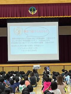 今朝の児童朝会は、イベント委員会(旧児童会)の発表でした。内容は、『赤い羽根共同募金』と『ユニセフ募金』が、どのようにいかされているのかと、募金の期間などの紹介でした。募金期間は、11月19日~24日まで、回収期間は、11月25日~29日までとなっています。高良小の児童のみなさん、よろしくお願いします。♥