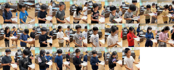今日、校長室で11月のがんばり名人表彰式が行われました。選ばれたがんばりノートを見ると、低学年では、学習したカタカナや漢字がていねいに書かれていました。中学年では、漢字や算数のほかに、社会科や理科に取り組んでいる児童も見られました。また高学年では、漢字のほかに、算数の文章問題や図形問題が多く見られました。そして、どの学年にも共通するのが、ていねいさとノートを無駄なく有効に使っているところでした。今回表彰されたみなさん、おめでとうございます!!