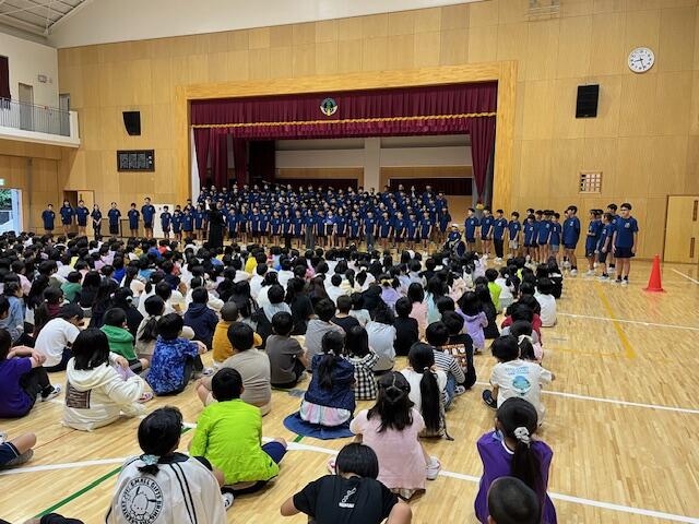 今週土曜日(30日)に『第71回那覇・浦添地区音楽発表会』が浦添市のてだこホールで行われます。それに先立ち、今朝「音楽発表会参加激励会」を体育館で行いました。参加する6年生のみなさんが、1年生から5年生に2曲披露してくれました。とても真剣で凜々しい表情で、美しいハーモニーを聞かせてくれました。下級生の児童にとっても今後の励み、目標になると思います。参加する6年生、体調を整え、全力を発揮してください。このような文化的な行事に参加できることで、多くのものを吸収してきてほしいです。高良小の6年生がんば!!