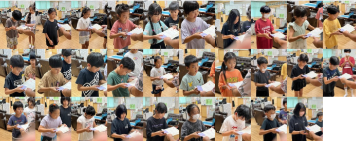 1学期終業式は、1学期の学習や生活を振り返り、その成果や努力を喜び合うとともに、2学期に向けた意欲や希望を育むことを目的としています。式の中では、児童代表の1学期のふり返りとこれからの抱負の発表があり、校長先生からは、励ましの言葉がありました。