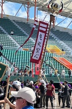 昨日は、那覇市内の小中学校の児童生徒がセルラースタジアムに集まり、『旗頭フェスタ』が催されました。高良小学校の児童も元気よく演技をしていました。児童の中には、他のお祭りにも参加したという声があり、地元愛が感じられました。