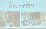 今朝の児童朝会は、企画委員会の発表でした。企画委員会では、これまで取り組んできた「朝のあいさつ運動」「玄関掃除」「代表委員会」「よろしく朝会」「入学を祝う会」「高良っ子祭り」などの取り組みについて説明しました。そして最後に、「募金活動のお知らせ」をしました。企画委員会が、高良小の大切な役割を担ってきたことがよく分かりました。企画委員会のみなさん、これからもよろしくお願いします。