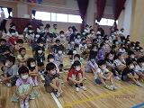 真新しい体育館で1年生を迎える会が行われました。各学年から楽しい出し物が披露されたり、素敵な手作りプレゼントが手渡されたりしました。とても賑やかな空気に包まれた会場には、子どもたちの笑顔や笑い声があふれていました。また、児童会役員や放送委員会の企画・運営の活躍も光りました。