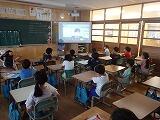 校長先生より、絵本「うえきばちです」の読み聞かせや校長室前の昆虫広場の様子についてお話がありました。読み聞かせを聞いている2年生の学級では、「め がでてきた~!」「け がでてきた~!アハハ!」などと楽しげな声が飛び交いました。また、昆虫広場の様子を見ると、「知ってる~!」「見たことある~!」などと反応すると「今度見に行こ~」と興味を示している様子がありました。