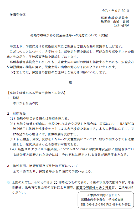 発熱や咳等がある児童生徒等への対応について