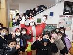 子どもたちは、明日からの冬休みが楽しみでしょうか、元気なあいさつが聞こえてきました。また、校長サンタやトナカイがお出迎えしてくれました。