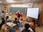 給食時間にも校長サンタが各学年を回りながらも6学年では教頭先生によるギターや音楽の先生によるハーモニカの演奏を共にケーキが届けられました。