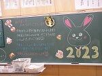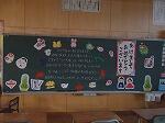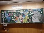 学校では先生方が子どもたちを教室で温かく出迎える黒板掲示がありました。