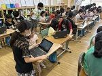 児童一人ひとりにタブレットの配布が始まってから3年あまり。今日は、5年生が1年生にタブレットの使い方を教える、「GIGA開き」が行われました。電源の入れ方からパスワード入力、学級のクラスルームの作成、電源ボックスへのしまい方まで、マンツーマンで丁寧に教えてくれました。まさに異学年交流の微笑ましい姿が、そこにはたくさん広がっていました。