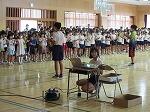 今月の表彰朝会では、ピアノコンペティション、夏季短水路記録会、タイムス杯クラブ対抗水泳競技大会、九州ジュニア水泳競技大会、新報児童オリンピック水泳競技大会、春季短水路年齢別選手権水泳競技大会、西日本年齢別選手権水泳競技大会、JOC夏季大会、実用英語技能検定、沖縄県少年少女レスリングやんばるカップ、全国少年少女レスリング選手権大会、柔道など、数多くの大会等で高良っ子の頑張りが見られました。中には、一人で十数個の賞を獲得している児童もおり、会場の体育館には、大きな拍手がこだましました。次回の表彰朝会でも、たくさんの高良っ子の頑張りが見られることでしょう!