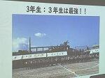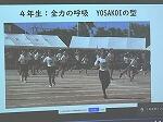 今月のお話朝会は、先日行われた運動会について。1年生はこん虫太極拳と玉入れ、2年生は、さまざまな曲にあわせたリズミカルなダンスと折り返しリレー、3年生は、チームワークが試される台風の目と初めてのリレー、4年生は、屈伸運動が決め手のよさこいソーランとリレー、5年生は、組み体操で息の合った3段ピラミッドや2重の円で構成された見事なウェーブ。そして高学年らしい迫力のあるリレー。トリを飾るのはやっぱり6年生。小学校生活最後の運動会では、キレのある美しいバチさばきで2曲のエイサーを披露。全演目最後の競技は、6年生によるクラス対抗リレー。会場全体が大いに盛り上がりました。