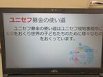 本日の児童朝会は、募金のお知らせです。赤い羽根共同募金やユニセフ募金についての意義や使い道、世界中の困っている人たちが、募金によって笑顔になれることなどを、伝えました。