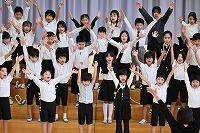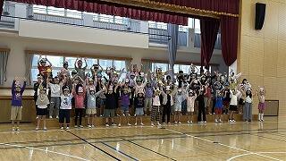 続いて「あわてんぼうのサンタクロース」を、歌とダンスで発表し、全校児童も一緒になって体を動かしながら楽しみました。